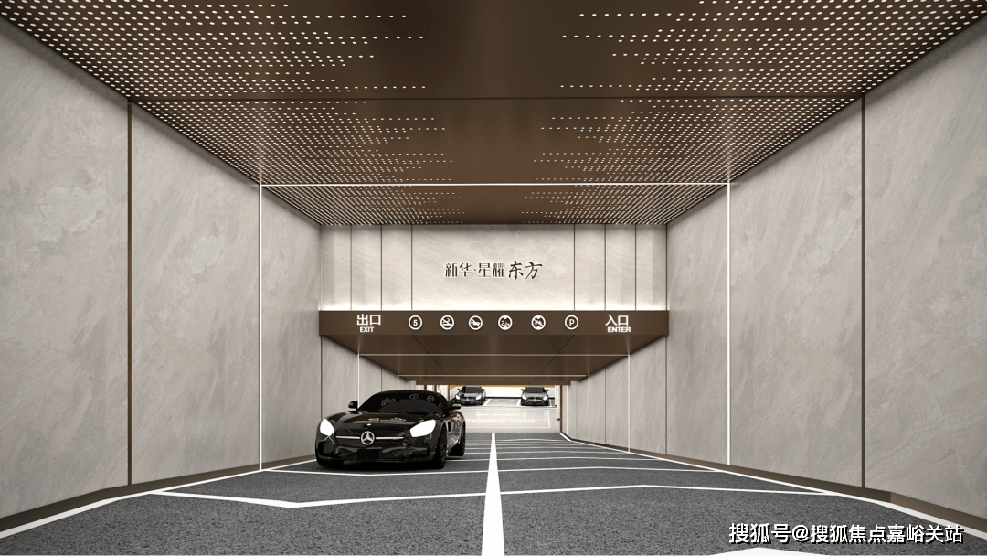 入口对行人、灵活车进行优化分流,保障业从平安;而地面泊车位,便利参不雅者、业从等姑且泊车的需求。别的正在车库上,项目还打破了常规地库的枯燥、昏暗。间接将豪车专属的星空顶搬入了地库里。从车行驶入地库的那一刻起头,一场名为“弘大”的归家之旅就起头了。通道入口,顶部文雅的星空放射灯,展示出星空般的艰深、璀璨,搭配两侧的高级铺面材质,尽显奢华气质。